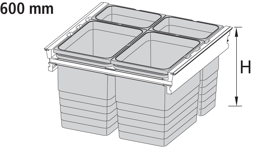 Komplet affaldssortering system for montering i 30’er og 60’er skabe.